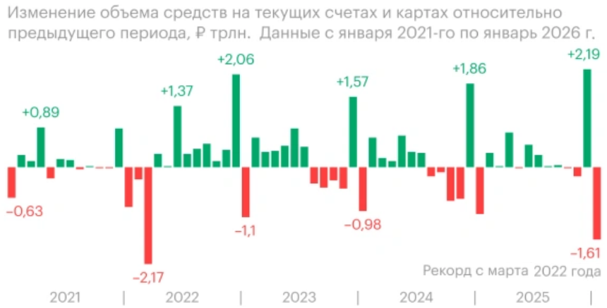 Как россияне каждый январь снимали по 1 трлн рублей со счетов. Инфографика